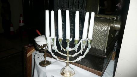 Keywords: Menorah 4.JPG en Menorah in the restaurant Anatewka in Lodz Poland own Brücke-Osteuropa 2010-06-23 Menorah