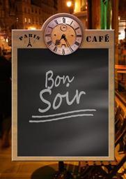 Keywords: menu board blackboard clock restaurant evening paris cafe bar label own label information enter note info
