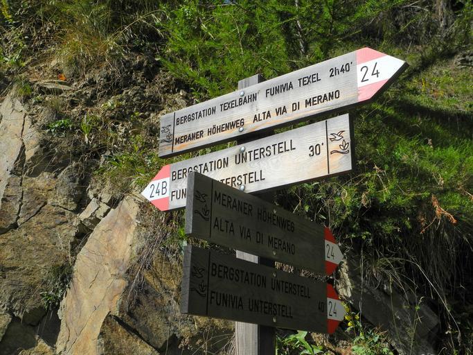 Keywords: Meraner Höhenweg Naturns2.JPG de Wegweiser 2015-09-09 10 54 10 own Seichter-wm other versions 46 668477270001 10 992104270002 cc-zero Hiking and footpath signs in Italy Uploaded with UploadWizard Meraner Höhenweg