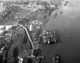 | Keywords: aerial photograph aerialphotograph south tyneside southtyneside jarrow river tyne rivertyne ship repairing shiprepairing dry dock drydock mercantile dry dock company ltd mercantiledrydockcompanyltd ship repair yard shiprepairyard black and white photograph blackandwhitephotograph striking march, 1950 march1950 turners ltd turnersltd industrial heritage industrialheritage buildings vegetation slope grass soil rock vessels cargo deck cabin crane river water road fence windows glass chimney structure frame plate path tile bank platform metal steel row pattern line cylinder pipe brick mast blackandwhite monochrome outdoor black and white Ship repair yard of Mercantile Dry Dock Co Ltd, Jarrow, March 1950 (TWAM ref. DT.TUR/2/4399A). Tyne & Wear Archives is proud to present a series of aerial photographs of South Tyneside. These images were captured by the Newcastle-based photographic firm Turners Ltd. Many of the images reflect the district's rich industrial heritage, showing businesses and places that no longer exist. We would be delighted if you could help us to tag these by adding the names of streets and buildings that you recognise. Old photographs can often stimulate distant memories and we would also love to hear any reminiscences that these images inspire (Copyright) We're happy for you to share these digital images within the spirit of The Commons. Please cite 'Tyne & Wear Archives & Museums' when reusing. Certain restrictions on high quality reproductions and commercial use of the original physical version apply though; if you're unsure please email archives@twmuseums.org.uk Ship repair yard of Mercantile Dry Dock Co Ltd, Jarrow, March 1950 (TWAM ref. DT.TUR/2/4399A). Tyne & Wear Archives is proud to present a series of aerial photographs of South Tyneside. These images were captured by the Newcastle-based photographic firm Turners Ltd. Many of the images reflect the district's rich industrial heritage, showing businesses and places that no longer exist. We would be delighted if you could help us to tag these by adding the names of streets and buildings that you recognise. Old photographs can often stimulate distant memories and we would also love to hear any reminiscences that these images inspire (Copyright) We're happy for you to share these digital images within the spirit of The Commons. Please cite 'Tyne & Wear Archives & Museums' when reusing. Certain restrictions on high quality reproductions and commercial use of the original physical version apply though; if you're unsure please email archives@twmuseums.org.uk |