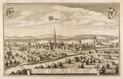 | Keywords: Merian Wangen im Allgäu.jpg Matthäus Merian d Ä Wangen im Allgäu From Topograhia Sueviae 1643 Creator Matthäus Merian PD-old-100 Source http //www vintage-map com/de/Landkarten/Europa/Deutschland/Merian-Deutschland-Wangen-im-Allgaeu-1650 91 html Historische Ansicht Wangen im Allgäu Other versions Image Merian Wangen im Allgäu colorized jpg History of Wangen im Allgäu Engravings by Matthäus Merian Artworks missing infobox template | ||||