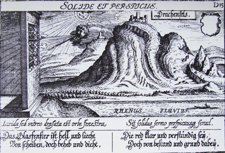 | Keywords: Merian Wolkenburg Drachenfels.jpg Matthäus Merian für Eberhard Kiesers žSchatzkästlein zeigt den wd Drachenfels Siebengebirge Drachenfels mit noch unzerstörter Burg und die noch vorhandene Burg Wolkenburg nahe Königswinter Nordrhein-Westfalen Rutschen zum Abtransport der Steine aus den Steinbrüchen sind gut zu erkennen Die Abbildung von Burg Wolkenburg ist vermutlich die einzige mit einer gewissen Verlässlichkeit source 1624 de Matthaeus Merian PD-old-100 Historic views of Königswinter Drachenfels Siebengebirge Engravings of castles in North Rhine-Westphalia Siebengebirge in art 1624 engravings |