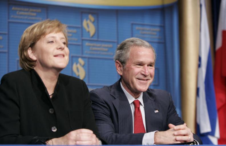| Keywords: Merkel-bush-may-2006.jpg President George W Bush shares a moment with Chancellor Angela Merkel during the American Jewish Committee's Centennial Dinner Thursday May 4 2006 at the National Building Museum in Washington D C White House http //www whitehouse gov/news/releases/2006/05/images/20060504-15_p050406pm-0398-515h html 2006-05-04 White House photo by Paul Morse US GOV PD Angela Merkel jpg PD-USGov George W Bush and Angela Merkel Bush05 George W Bush in 2006 20060504 Angela Merkel in 2006 20060504 Judaism in the United States Photographs by Paul Morse National Building Museum |