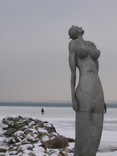 Keywords: mermaid baltic sea winter cold sea snow beach sculpture art
