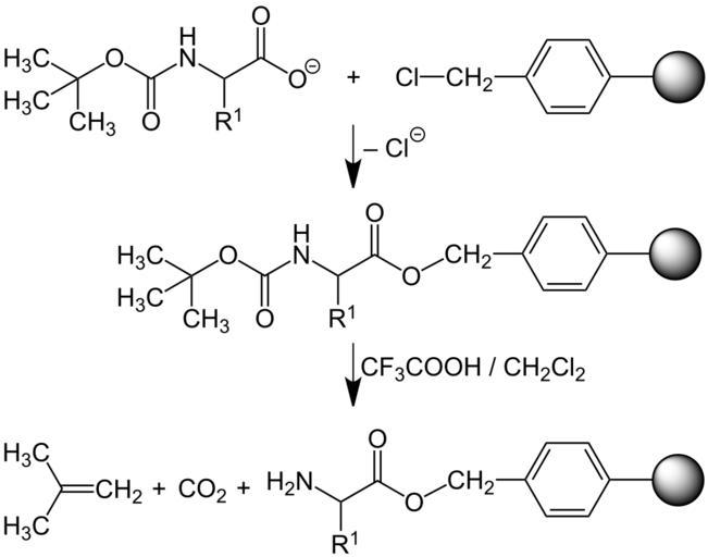 Keywords: Merrifield Synthesis 1 V.1.svg en Merrifield_Synthesis_1 de Merrifield_Synthese_1 own Jü 2010-07-16 Peptide synthesis