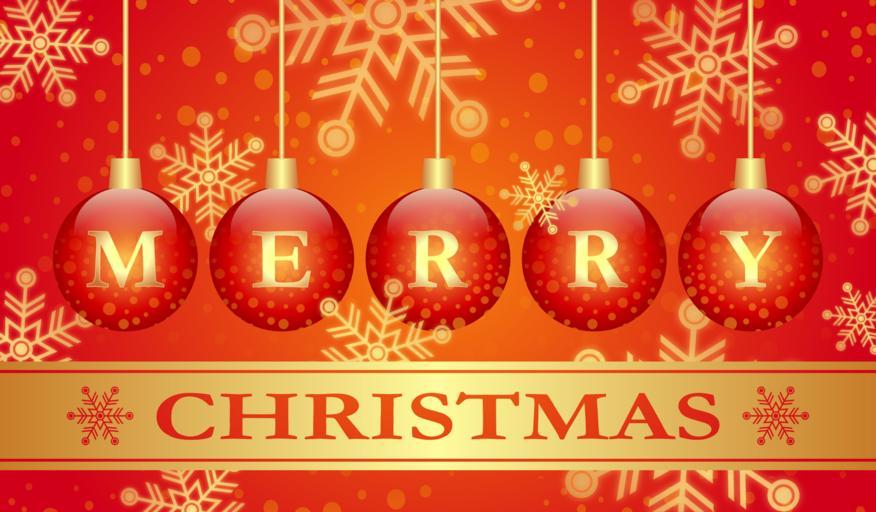 Keywords: merry christmas merry christmas holiday winter card greeting celebration xmas snow december season gold red merry christmas text design baubles snowflakes seasonal festive merry christmas card ornament christmas ornament