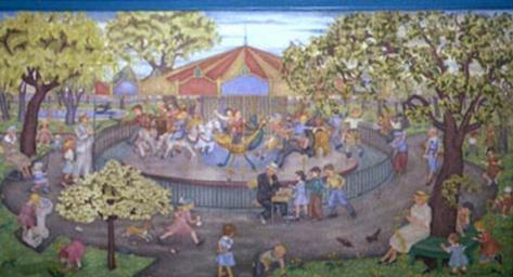 | Keywords: Merry go round by Ethel Spears.jpg en Merry Go Round an oil on canvas mural by Ethel Spears done in 1939 1939-01-02 http //www wpamurals com/rochelle htm Ethel Spears other versions PD-USGov Ethel Spears Rochelle Illinois 1939 paintings WPA murals |