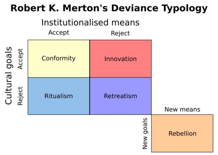 Keywords: Mertons social strain theory.svg This is a diagram depicting Robert K Merton's Social Strain Theory Own 2007-01-30 User Wykis Public domain 200px Sociological diagrams Robert K Merton SVG diagrams in English