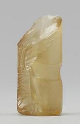 | Keywords: Mesopotamian - Cylinder Seal with Human Headed Winged Bull and Inscription - Walters 42808 - Side E.jpg This scene on this seal depicts a human headed winged lion wearing a horned crown with an inverted crescent in the field above him The scene also incorporates a cuneiform inscription in three registers late 2nd millenium BC Neo-Babylonain ; Assyrian yellow transparent stone cm 2 4 0 9 accession number 42 808 4549 Sadie Jones Mrs Henry Walters New York date and mode of acquisition unknown Sale Joseph Brummer New York 1941 Walters Art Museum 1941 by purchase Museum purchase 1941 Inscription place of origin Mesopotamia Walters Art Museum license Cylinder seals in the Walters Art Museum Art of Mesopotamia in the Walters Art Museum Lions in art of the ancient Near East Cuneiform on cylinder seals Cuneiform on media Griffin cylinder seal Walters 42808 Walters Art Museum cylinder seals with cuneiform Animals in art of the ancient Near East An cuneiform Pa cuneiform Media contributed by the Walters Art Museum needs category review |