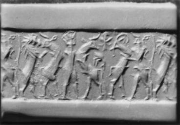 | Keywords: Mesopotamian - Cylinder Seal with Figures in Combat with Horned Animals - Walters 42628 - Impression.jpg Combat scenes between humans and other creatures became very popular in the later Early Dynastic period The intricate pairing of interlocking figures creates an elaborate decorative pattern The star between the heads of the bull and goat may represent the sign for deity between 2600 2350 BC Early Dynastic II-Early Dynastic III lapis lazuli cm 2 1 1 accession number 42 628 7665 Mrs Henry Walters New York Sale Joseph Brummer New York 1941 Walters Art Museum 1941 by purchase Museum purchase 1941 place of origin Mesopotamia Walters Art Museum license Cylinder seals in the Walters Art Museum Art of Mesopotamia in the Walters Art Museum Confronted-animals Lions in art of the ancient Near East Animals in art of the ancient Near East Cylinder seal impressions Walters Art Museum cylinder seal impressions Media contributed by the Walters Art Museum needs category review |