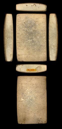 | Keywords: Mesopotamian - Stone Foundation Tablet - Walters 41222 - View A.jpg This tablet is plano-convex with a cuneiform inscription of Sin-iddinam on two faces between 1849 1843 BC Old Babylonian limestone cm 14 8 9 5 accession number 41 222 23210 Sadie Jones Mrs Henry Walters New York date and mode of acquisition unknown Sale Joseph Brummer New York 1941 Walters Art Museum 1941 by purchase Museum purchase 1941 Translation on obverse For Utu / lord of justice of heaven and earth / learned in decision / the one who choses in favor of innocence / the king of Ebabbar / his king / Sin-iddinam / the shepherd who decorates everything / for Nippur / the provider of Ur / king of Larsa / king of Sumer and Akkad / the Ebabbar / his beloved house ; Translation On reverse for the sake of his life / he built it / For abundant distant days / he enlarged that dwelling place / With the thing that he Sin-iddinam has done / may Utu / rejoice / A life of sweet things / and bright days / as a reward / may he Utu give to him Sin-iddinam place of origin Mesopotamia Walters Art Museum license Ancient Near East art in the Walters Art Museum Art of Mesopotamia in the Walters Art Museum Cuneiform Cuneiform on foundation objects Ab cuneiform Media contributed by the Walters Art Museum needs category review Nippur Sin-Iddinam |