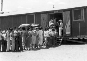 Keywords: Mess Hall Line.jpg en <pre>Title Part of a line waiting for lunch outside the mess hall at noon -- Photographer Lange Dorothea -- Manzanar California 7/1/42 Identifier Volume 21 Identifier Section C Identifier WRA no C-670 Collection War Relocation Authority Photographs of Japanese-American Evacuation and Resettlement Series 8 Manzanar Relocation Center Manzanar CA Contributing Institution The Bancroft Library University of California Berkeley http //content cdlib org/ark /13030/ft7h4nb3tg/ docId ft7h4nb3tg brand jarda layout printable-details Line waiting for lunch</pre> Creator Dorothea Lange PD-USGov original upload log page en wikipedia Mess_Hall_Line jpg 2007-04-18 22 25 Gmatsuda 1400×996× 143129 bytes <nowiki>Title Part of a line waiting for lunch outside the mess hall at noon -- Photographer Lange Dorothea -- Manzanar California 7/1/42 Identifier Volume 21 Identifier Section C Identifier WRA no C-670 Collection War Relocation Authority Photographs </nowiki> Manzanar War Relocation Center Mess halls