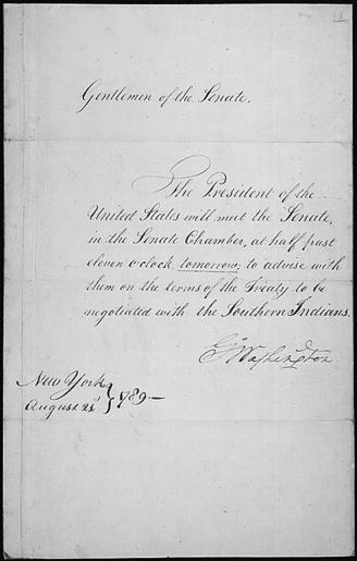 | Keywords: u.s. national archives usnationalarchives narations blog narationsblog george washington georgewashington new york newyork 1789 letter handwriting senate nara:arcid=306283 treaty indian native american nativeamerican blackandwhite monochrome text document writing photo border drawing sketch black and white From: Anson McCook Collection of Presidential Signatures, compiled 1789 - 1975 Created by: U.S. Senate. (03/04/1789 - ) Production Date 08/21/1789 Persistent URL: catalog.archives.gov/id/306283" Repository: NARA’s Center for Legislative Archives (NWL), Washington, DC Reproductions may be ordered via an independent vendor. The U.S. National Archives maintains a list of vendors at www.archives.gov/research/order/vendors-photos-maps-dc.html. Access Restrictions: Unrestricted Use Restrictions: Unrestricted Learn More: This item is featured on the National Archives' Online Public Access blog, NARAtions. Check out the post here to read about why Jessie Kratz, archivist at the National Archives' Center for Legislative Archives in Washington, DC, finds the presidential precedents set by George Washington so interesting! From: Anson McCook Collection of Presidential Signatures, compiled 1789 - 1975 Created by: U.S. Senate. (03/04/1789 - ) Production Date 08/21/1789 Persistent URL: catalog.archives.gov/id/306283" Repository: NARA’s Center for Legislative Archives (NWL), Washington, DC Reproductions may be ordered via an independent vendor. The U.S. National Archives maintains a list of vendors at www.archives.gov/research/order/vendors-photos-maps-dc.html. Access Restrictions: Unrestricted Use Restrictions: Unrestricted Learn More: This item is featured on the National Archives' Online Public Access blog, NARAtions. Check out the post here to read about why Jessie Kratz, archivist at the National Archives' Center for Legislative Archives in Washington, DC, finds the presidential precedents set by George Washington so interesting! |