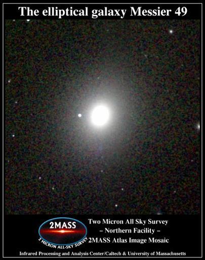 | Keywords: Messier 049 2MASS.jpg The elliptical galaxy Messier 49 http //www ipac caltech edu/2mass/gallery/messiercat html 2MASS Atlas Image Gallery The Messier Catalog Two Micron All Sky Survey 2MASS a joint project of the University of Massachusetts and the Infrared Processing and Analysis Center/California Institute of Technology funded by the National Aeronautics and Space Administration and the National Science Foundation 2MASS Atlas image Messier 49 2MASS Atlas Image Gallery The Messier Catalog BIG SIZE |