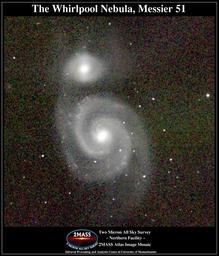 | Keywords: Messier 051 2MASS.jpg The Whirlpool Nebula Messier 51 Messierobjekt 51 Whirlpool-Galaxie http //www ipac caltech edu/2mass/gallery/messiercat html 2MASS Atlas Image Gallery The Messier Catalog Atlas Image or Atlas Image mosaic obtained as part of the Two Micron All Sky Survey 2MASS a joint project of the University of Massachusetts and the Infrared Processing and Analysis Center/California Institute of Technology funded by the National Aeronautics and Space Administration and the National Science Foundation 2MASS Atlas image Whirlpool Galaxy 2MASS Atlas Image Gallery The Messier Catalog BIG SIZE |