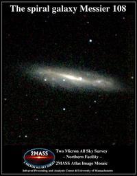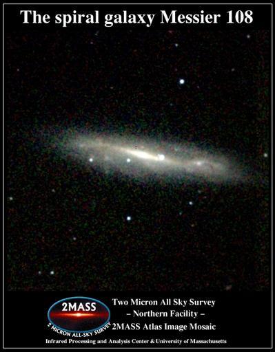 | Keywords: Messier 108 2MASS.jpg The spiral galaxy Messier 108 http //www ipac caltech edu/2mass/gallery/messiercat html 2MASS Atlas Image Gallery The Messier Catalog Two Micron All Sky Survey 2MASS a joint project of the University of Massachusetts and the Infrared Processing and Analysis Center/California Institute of Technology funded by the National Aeronautics and Space Administration and the National Science Foundation 2MASS Atlas image Messier 108 2MASS Atlas Image Gallery The Messier Catalog BIG SIZE |