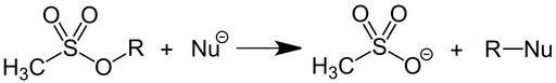 Keywords: Mesylate Substitution V.1.svg en Mesylate_Substitution de Mesylat-Substitution own Jü 2010-04-10 Substitution reactions Mesylate esters