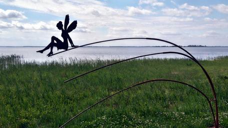 Keywords: metal art metal fig elf bank artwork art wrought iron on the water voltage