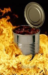 Keywords: metal can red beans raging fire flames hot burning blaze glow
