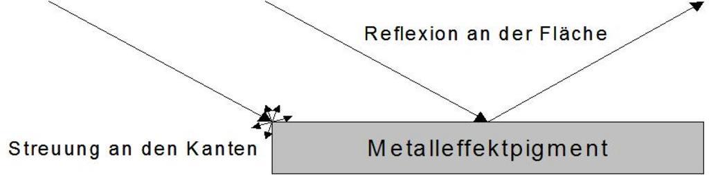 Keywords: Metal Effect Pigment.JPG en The picture shows the optical processes when light rays fall onto a single metal effect pigment de Es wird die optische Wirkung dargestellt die auftritt wenn Lichtstrahlen auf ein einzelnen Metalleffektpigmentteilchen treffen own Hardcoreraveman 2009-07-02 Effect pigments |