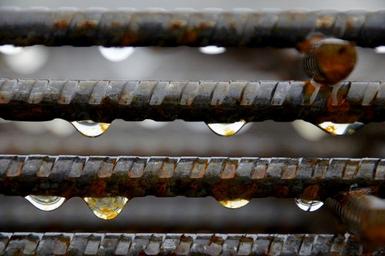 Keywords: metal stems reinforcement armatures rain water rust drop drops of water raindrops reflections business stock work material iron armed solid industry