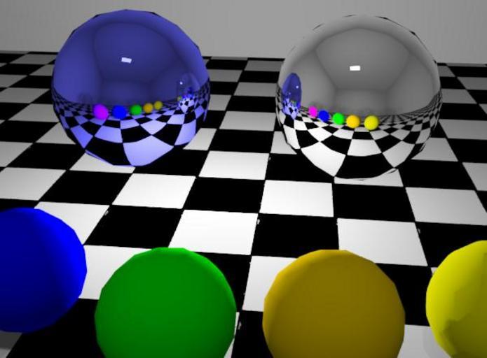 Keywords: Metallic balls.jpg en Sample of metallic reflection Model created with Google SketchUp Rendered with IRender nXt own AlHart 2009-11-22 Computer generated examples Computer graphics
