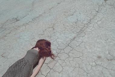 Keywords: metaphor falling down failure dry stressed cracked panic anxiety broken loss woman red hair dress laying down falling crisis depression down injured stumbling downturn anonymous