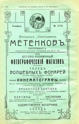 | Keywords: Metenkov3.jpg ru Рекламный буклет фотог афического магазина етенкова Екате инбу г начало 20 века 1910 http //book uraic ru/elib/book-ural/161564/r10 htm author other versions Custom license marker 2015 04 25 PD-RusEmpire Uploaded with UploadWizard Metenkov House Yekaterinburg |