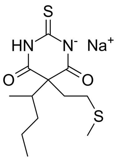 Keywords: Methitural sodium.svg Chemical structure of Methitural sodium Own 16 46 21 May 2012 UTC Ed Edgar181 Barbiturates Thiocarbonyl compounds Sodium salts of organic compounds Thioethers