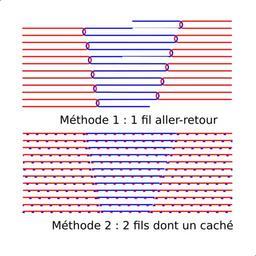 | Keywords: Méthodes jacquard.svg en This describes schematically 2 methods of using colour for drawings in knitting Known in french as jacquard in english for one as intarsia fr Ceci décrit schématiquement deux méthodes de base pour faire des dessins en couleur en tricotant jacquard en français intarsia pour l'une en anglais own Trassiorf 2010-01-30 see also Ronds jacquard svg file Ronds jacquard svg Knitting diagrams SVG textile production | ||||
