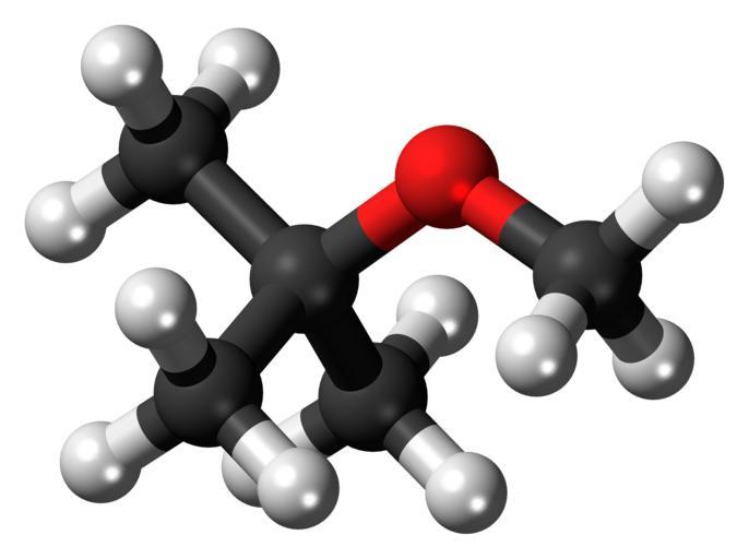 | Keywords: Methyl tert-butyl ether 3D ball.png Ball-and-stick model of the methyl tert-butyl ether molecule also known as MTBE an ether used as a solvent Colour code 505050 Carbon C black<br> F0F0F0 Hydrogen H white<br> F51E1E Oxygen O red<br> 2011-07-03 own DS Visualizer Jynto talk Space-filling version cc-zero Images by Jynto MTBE |