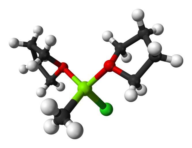 | Keywords: Methylmagnesium-chloride-THF-3D-balls.png Ball-and-stick model of methylmagnesium chloride MeMgCl coordinated by two tetrahydrofuran molecules Own 2007-08-20 Ben Mills Benjah-bmm27 Images by Ben Mills Grignard reagents THF complexes Methyl complexes Chlorine compounds |