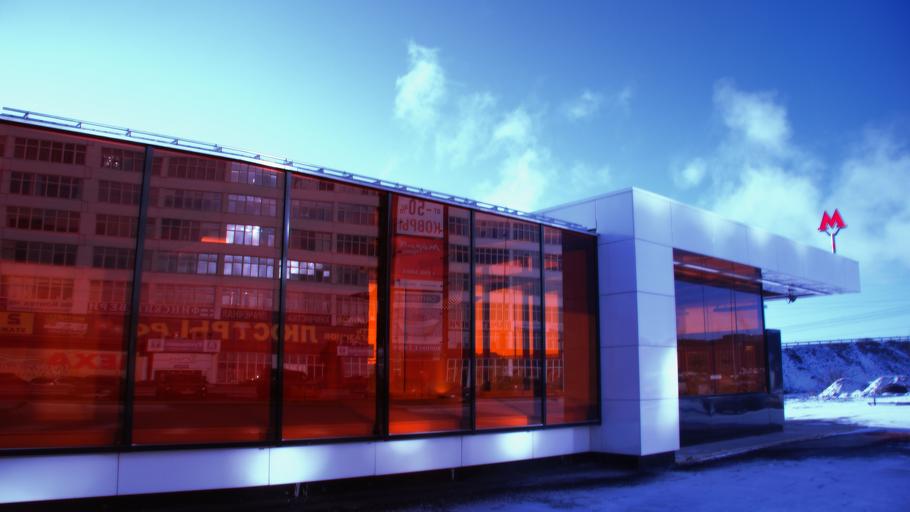 Keywords: metro rumyantsevo exit moscow russia blue center transport street megalopolis glass bright window