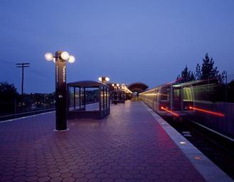 Keywords: metro station train travel transportation speed fast rockway maryland evening dusk sunset sky lights lighting platform mass transit reflections