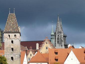 Keywords: metzgerturm ulm city view city homes building architecture city panorama town hall gable roofs ulm cathedral münster towers facades