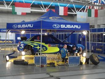 | Keywords: MEX 2008 RB 06 service 4.jpg Chris Atkinson's Subaru Impreza WRC car is serviced prior to the start of the 2008 Rally Mexico at rally base in the Poliforum in Leon Mexico Own 2008-02-27 Joshbaumgartner 2008 Rally Mexico Chris Atkinson in 2008 Subaru Impreza WRC2007 World Rally Championship automobile maintenance |