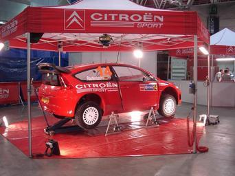 | Keywords: MEX 2008 RB 14 parked 3.jpg Conrad Rautenbach's Citroën C4 WRC car being serviced prior to the 2008 Rally Mexico at rally base in the Poliforum in Leon Mexico Own 2008-02-27 Joshbaumgartner 2008 Rally Mexico Conrad Rautenbach Citroën C4 WRC of PH-Sport World Rally Championship automobile maintenance |