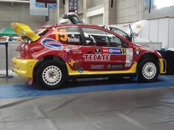 | Keywords: MEX 2008 RB 15 parked 2.jpg Ricardo Triviño's Peugeot 206 WRC car parked prior to the 2008 Rally Mexico at rally base in the Poliforum in Leon Mexico Own 2008-02-27 Joshbaumgartner Deminimis Logos from different companies on car All logos are copyrighted by their respective owners 2008 Rally Mexico Ricardo Triviño Peugeot 206 WRC |