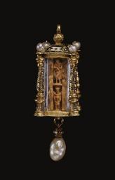| Keywords: Mexican - Crucifixion and Deposition - Walters 61120 - Side D.jpg The workmanship and materials of the case are European while the iridescent blue-to-emerald green quetzal feathers on the inside are Central American in origin and Mayan as used in a work of art The Crucifixion could have been carved by a native craftsman in colonized Mexico following a European model; but if the wood is boxwood a European wood the artist probably was also The boxwood shrub produces hard fine-grained wood permitting precise detail that holds its shape Indeed the virtuosity needed for such a minute scale is part of the appeal The not-quite-European aesthetic added an exotic quality The tail feathers of the male quetzal called the most spectacular bird in the New World now nearly extinct were incorporated into Christian devotional paintings produced in Central America for the European market and highly prized by the Habsburgs and other collectors A similar pendant belonged to the duke of Bavaria ca 1550 1600 Renaissance boxwood quetzal feathers rock crystal gold enamel pigments pearls cm 4 2 6 accession number 61 120 11827 Henry Walters Baltimore date and mode of acquisition unknown Walters Art Museum Henry Walters Acquired by Henry Walters World of Wonder The Walters Art Gallery Baltimore 1971-1972 Jewelry - Ancient to Modern The Walters Art Gallery Baltimore 1979-1980 place of origin Spain Walters Art Museum license Renaissance applied arts in the Walters Art Museum Jewellery in the Walters Art Museum Mexican feather art Mexico in the 16th century ¢ Media contributed by the Walters Art Museum needs category review Media contributed by the Walters Art Museum needs artist review |