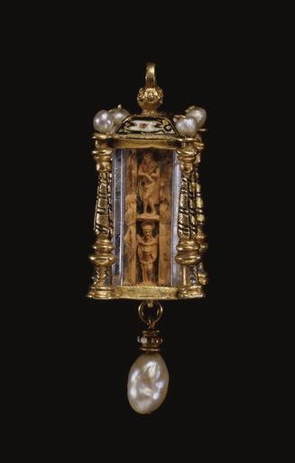 Keywords: Mexican - Crucifixion and Deposition - Walters 61120 - Side D.jpg The workmanship and materials of the case are European while the iridescent blue-to-emerald green quetzal feathers on the inside are Central American in origin and Mayan as used in a work of art The Crucifixion could have been carved by a native craftsman in colonized Mexico following a European model; but if the wood is boxwood a European wood the artist probably was also The boxwood shrub produces hard fine-grained wood permitting precise detail that holds its shape Indeed the virtuosity needed for such a minute scale is part of the appeal The not-quite-European aesthetic added an exotic quality The tail feathers of the male quetzal called the most spectacular bird in the New World now nearly extinct were incorporated into Christian devotional paintings produced in Central America for the European market and highly prized by the Habsburgs and other collectors A similar pendant belonged to the duke of Bavaria ca 1550 1600 Renaissance boxwood quetzal feathers rock crystal gold enamel pigments pearls cm 4 2 6 accession number 61 120 11827 Henry Walters Baltimore date and mode of acquisition unknown Walters Art Museum Henry Walters Acquired by Henry Walters World of Wonder The Walters Art Gallery Baltimore 1971-1972 Jewelry - Ancient to Modern The Walters Art Gallery Baltimore 1979-1980 place of origin Spain Walters Art Museum license Renaissance applied arts in the Walters Art Museum Jewellery in the Walters Art Museum Mexican feather art Mexico in the 16th century ¢ Media contributed by the Walters Art Museum needs category review Media contributed by the Walters Art Museum needs artist review |