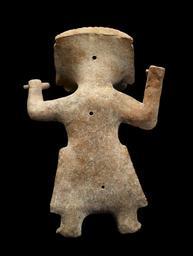 | Keywords: Mexican - Female Ritual Performer - Walters 20092047 - Back.jpg South-central Veracruz was home to a number of vibrant sculptural traditions Among them is the so-called Nopiloa style named for the archaeological site of Nopiloa located in the Mixtequilla area of southern Veracruz Hundreds if not thousands of these striking figures were produced during the Late Classic Period ranging from small figures to large-scale sculptures most of which were made in press molds with some hand-modeling for adding accouterments of dress The figures may depict ritual performers or intended sacrificial victims in the midst of a trance induced by the ingestion of mind-altering substances such as hallucinogenic plants animal poisons or alcohol It has been suggested that these figures represent the Classic Period antecedents of the ritual practices of induced joviality and ecstatic dance in honor of the Postclassic deity Xochipilli-Macuilzochitl These Nopiloa figures typically are portrayed with upraised head and arms held at the side of the head Usually the right hand clutches an object that eludes identification although it has been variously suggested to be a rattle a potent native tobacco cigar or a hallucinogenic plant material AD 600-900 Late Classic earthenware cm 40 32 24 13 10 16 accession number 2009 20 47 80202 Economos Works of Art date and mode of acquisition unknown John G Bourne 1990s by purchase Walters Art Museum Gift of John Bourne 2009 place of origin southern Veracruz Mexico Walters Art Museum license Mexican Pre-Columbian art in the Walters Art Museum Remojadas Mexican - Ritual Performer - Walters Art Museum |