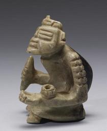| Keywords: Mexican - Hunchback Figure - Walters 295 - Left.jpg Chontal is the name given to a group of objects that are less rigidly geometric than Mezcala works The three-dimensional quality facial treatment and hatch marks on the arms identify this figure as Chontal The meanings of the implements in the hands-perhaps a gourd or mano a cylindrical grinding tool and a cup-are not known between 600 300 BC Formative greenstone cm 10 7 5 7 3 accession number 29 5 6211 Agueda Hernandex Nyack New York Albert Ulrich Taxco Mexico Rebecca Herrero Stokes New York Walters Art Museum Gift of Rebecca Herrero Stokes 2003 Art of the Ancient Americas The Walters Art Museum Baltimore 2002-2010 place of origin Guerrero Mexico Walters Art Museum license Mexican Pre-Columbian art in the Walters Art Museum Art of Mexico Media contributed by the Walters Art Museum needs category review Mezcala stone figurines |