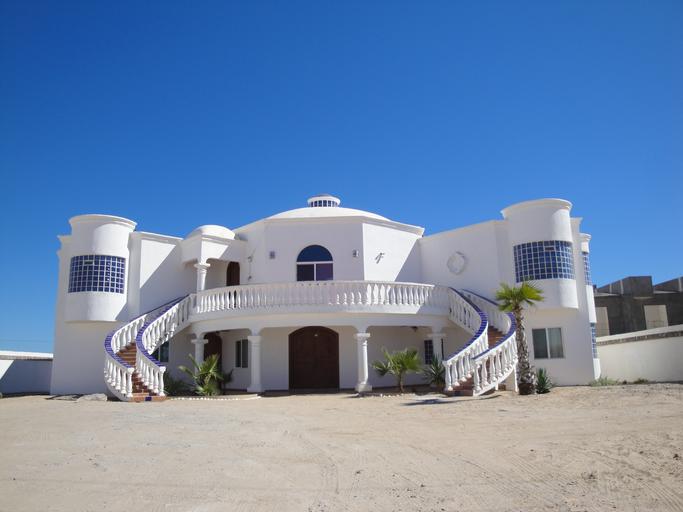 Keywords: mexico beach mansion white house villa stairs blue windows