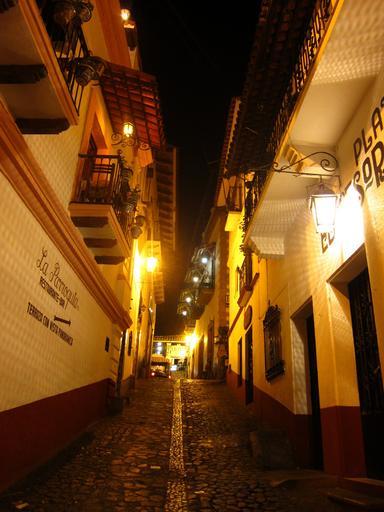 Keywords: mexico building travel night view cobblestone tourism tasco