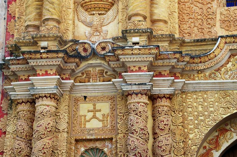 Keywords: mexico chiapas san cristobal church facade architecture sculptures yellow sandstone decoration