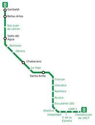 Keywords: Mexico City Metro line 8.svg inkscape Map of line 8 of the Mexico City Metro Vectorized by Mysid on a JPEG Image MetroDF Mapa 8 jpg originally by User Battroid 2008-02-25 Mysid Battroid Mexico City subway maps Line 8 of Mexico City Metro