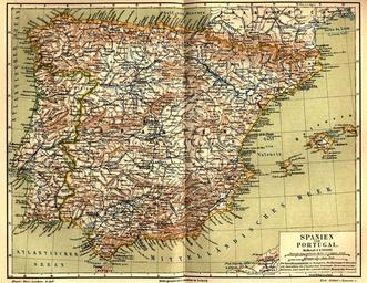 Keywords: Meyers b15 s0063a.jpg 15 0062 0064 63 Maps from Meyers Konversationslexikon 4th edition Old maps of Spain Old maps of Portugal