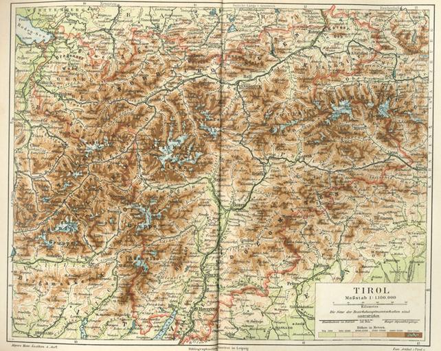Keywords: Meyers b15 s0720a.jpg 15 0719 0721 720 Maps from Meyers Konversationslexikon 4th edition Old maps of Tyrol state
