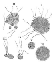 | Keywords: Meyers b1 s0342 b2.png de Entwicklung von Pandorina I “ schwärmende Familie II “ geschlechtliche Familie von welcher einzelne Zellen aus der Hülle austreten III “ zwei sich paarende Schwärmer IV “ dieselben nach ihrer Vereinigung V “ eben entstandene Z VI “ ausgewachsene Zygospore Meyers b1 s0342 jpg ca 1885 author PD-Meyers Pandorina Chlorophyta diagrams Images from Meyers Konversationslexikon 4th edition - text figures | ||||