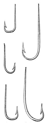 | Keywords: Meyers b1 s0566 b4.png  de Einfache Haken oben links Sneck bend Mitte links Kirby unten links Pennel oben rechts Limerick unten rechts Kendal round bend Meyers b1 s0566 jpg ca 1885 author PD-Meyers Fishing hooks Images from Meyers Konversationslexikon 4th edition - text figures |